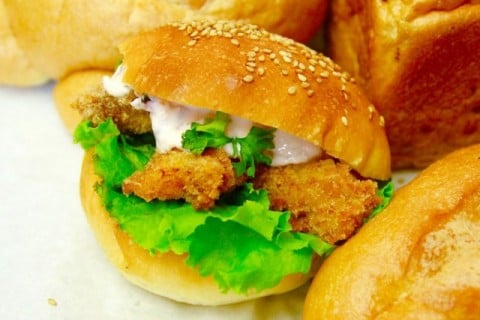 ここで販売されている「地魚サンド」は、宗像産の米粉を18%配合したもっちりとしたパンに、玄界灘で獲れた新鮮な地魚のフライを挟んだ商品です。