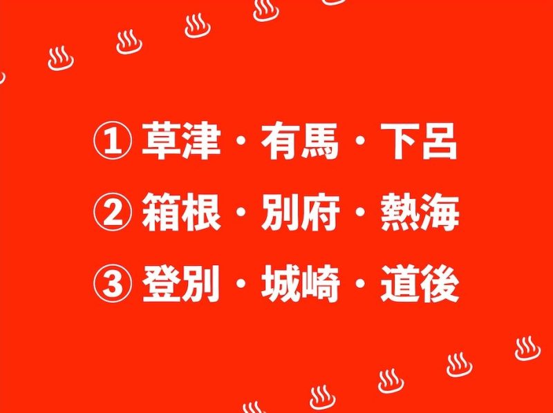 正解は、「 ① 草津・有馬・下呂 」でした。