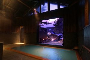 施設は昔の湯治場をイメージした和風建築で、木と岩を基調とした趣のある造りとなっています。