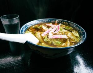 塩原温泉郷を代表するご当地グルメといえば「スープ入り焼きそば」。