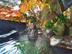 白龍の滝の瀑下にあり季節の彩りを楽しみながら入浴できる仙境野天風呂や笹の葉の音に癒される竹林の湯など、野趣あふれる露天風呂を味わえます。