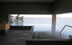 「森の湯」では緑豊かな景色を、「潟の湯」からは前面に広がる柴山潟の水面を眺めながら入浴を楽しめ、四季の風景とともに温泉を満喫できます。