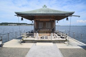 お堂の中には竜神と弁財天が祀られており、湖面と建築との調和が美しい景観を作り出しています。