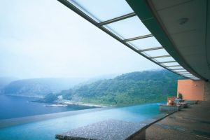 斜面をすべるように上がれば、伊東温泉 源泉かけ流しの湯けむりと海風が出会う山の上の露天風呂へ。