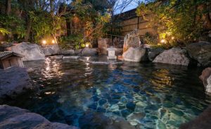 泉質はアルカリ性単純温泉と硫黄泉で、効能は美肌・神経痛・筋肉痛・関節痛・冷え性・慢性消化器病・皮膚病・婦人病への適応症です。源泉温度は約50~60℃で、pH値は約8.5の弱アルカリ性で、湧出量は毎分約1,700リットルの“W美肌の湯(単純泉×硫黄泉)”が特徴の温泉です。