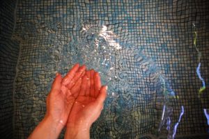 澄んだ青は視線を引き寄せ、湯が「沸いている」事実を静かに伝えます。