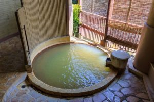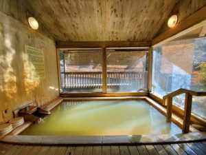 御前湯では内湯や露天など異なる湯船で温度や外気の混ざり方を確かめながら浸かることができます。