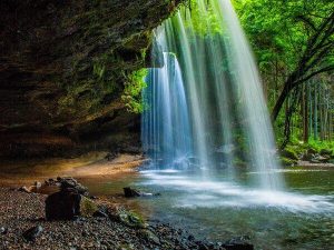 水のカーテン越しに差す光、一定の水音がつくる落ち着き。濡れた岩の冷たさが足元から伝わり、体感温度まで含めて記憶に残る時間になります。短い滞在でも、静けさの密度は十分です。