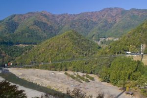 渓谷をまたぐ「谷瀬の吊り橋」に立つと、板のきしみとともに風が体を抜けていきます。足下に流れる川面は近く、視線が揺れて心が冴えるようです。