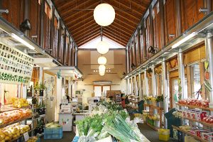 駐車場に車を停めると、まず目に入るのは直売所に並ぶ野菜や果物。