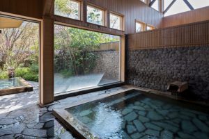 湯処では由布院温泉の源泉かけ流しを落ち着いた空間で味わえます。