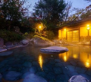 敷地内には男女別の大露天風呂をはじめ、複数の湯処が点在し、源泉かけ流しの湯を場所ごとに異なる表情で楽しめます。
