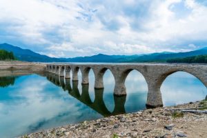 大雪山の山あい、静かに水をたたえる糠平湖。その湖畔に姿を現すのが、旧国鉄士幌線の遺構として知られるタウシュベツ川橋梁です。