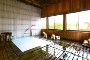 泉質は酸性・含硫黄‐硫酸塩泉(硫化水素型)の乳白色のにごり湯。