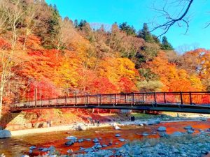 塩原温泉郷を代表する景勝地として知られるのが、もみじ谷大吊橋と紅の吊橋です。