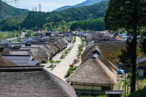 通りの両側には茅葺き屋根の民家が整然と並び、電柱や電線を極力排した景観はまるで時代を遡ったかのような静けさを湛えています。
