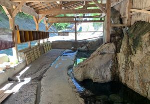 共同浴場には川に寄り添う露天風の岩風呂と、落ち着いた室礼の湯小屋があり、いずれも湯の鮮度が命です。