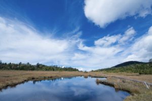木道が整備された湿原内を歩くと足元には高山植物が咲き、視線を上げれば空と山だけが広がる開放的な世界が現れます。