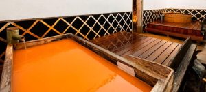 湧出量は自噴中心の豊富な湧出量の鉄分と塩分を含む茶褐色のにごり湯、強い保温・保湿性、湯上がり後の発汗持続、源泉かけ流し主体の湯使いが特徴の温泉です。