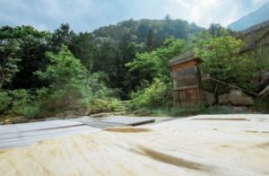 山の熱に身をあずける 中房温泉の地熱浴場