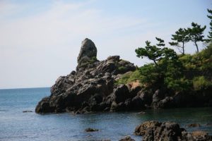 小浜温泉の穏やかな海辺の湯とは対照的な、荒々しくも神聖な風景。