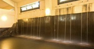 広い浴室にずらりと並ぶ打たせ湯は圧巻で、その数と規模は全国でも屈指。