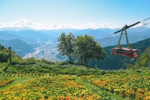 湯沢高原ロープウェイは山頂の冷たい風と見晴らしが気持ちよく、晴れた日ほど遠くの山並みがくっきりします。