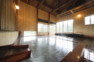 泉温は約78〜89度。湯の花をたっぷり含んだ灰白色のにごり湯が、源泉かけ流しで浴槽に注がれ続けているのです。