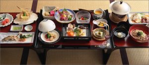 青根温泉の宿の食卓には、蔵王の山と三陸の海、両方の恵みが並びます。
