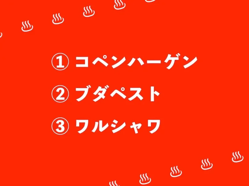 世界の中には多くの温泉があることで有名な都市もあり、ヨーロッパには「温泉都市」という愛称がつけられた大都市もあります。ではこの都市とは、次の中のどこでしょうか?