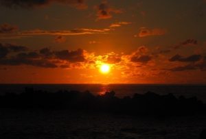 湯野浜温泉の夕陽は、翌日も忘れられません。
