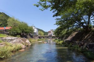 音信川沿いの温泉街へ 長門の山あいを流れる「願いが叶う川」
